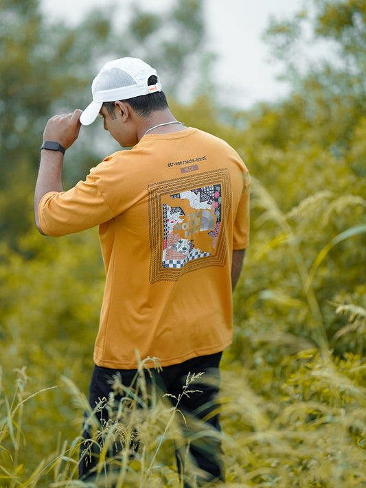 Login Drop Shoulder Mustard Printed T-Shirts