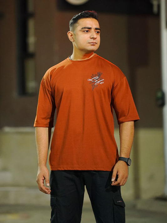 Login Oversized Orange Printed T-Shirts