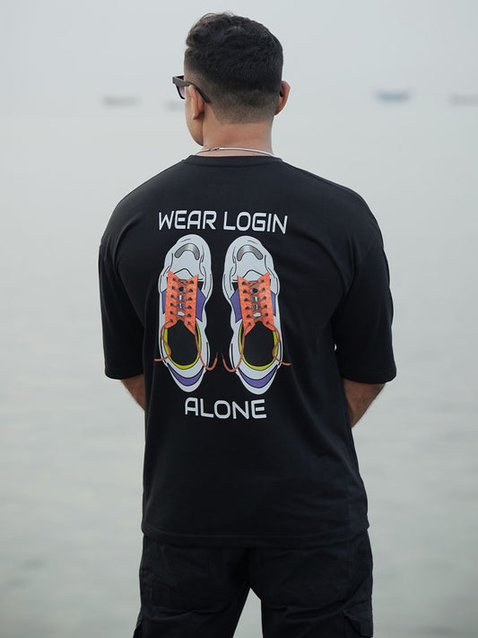 Login Oversized Black Printed T-Shirts
