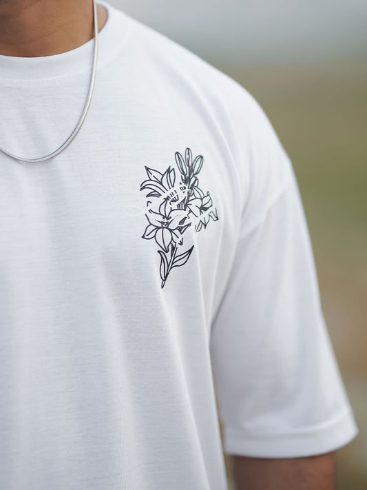 Login Oversized White Printed T-Shirts