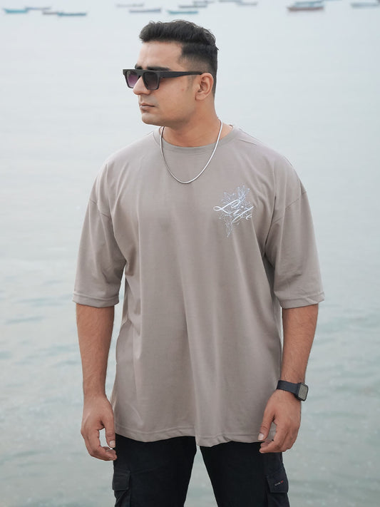 Login Oversized Grey Printed T-Shirts